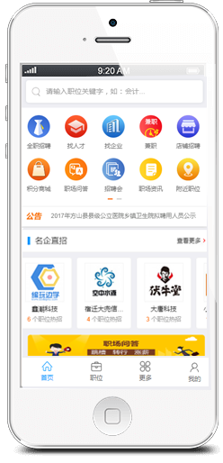 - 無(wú)需下載,沒(méi)有平臺(tái)、機(jī)型的限制,有觸屏手機(jī)就能上網(wǎng)找工作!機(jī)會(huì)不再稍縱即逝,它已在你輕盈的指尖上!